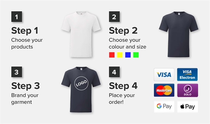 Our website offers a large selection of the t-shirts, polo shirts, jackets and much more we have available to be printed or embroidered with your logo or design. All on-site prices offer customers the best value in the St Helens area with no set up charges and FREE delivery. You can checkout in just a few moments by simply picking your garment, selecting sizes & colours and uploading your logo.