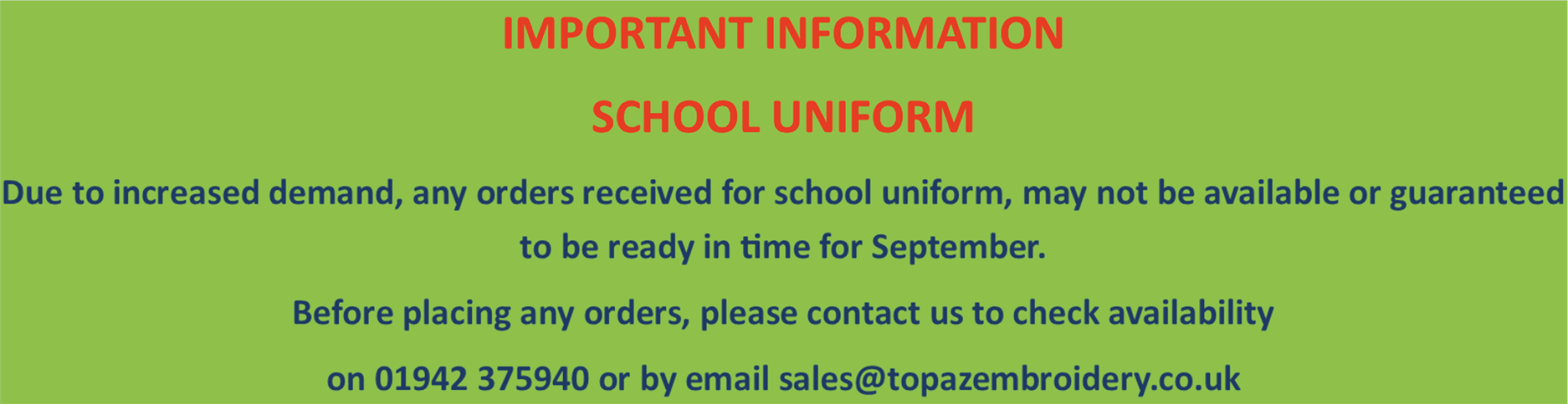 We deliver quality from start to finish, from when you enquire, all the way through to aftercare we want your journey with Topaz to be the easiest experience possible.We supply workwear, printed t-shirts, embroidery plus school uniforms and kits for schools in St Helens, Haydock, Lowton, Newton Le Willows and surrounding areas of Merseyside and Lancashire.
